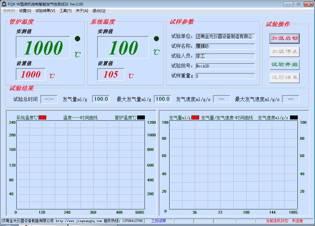 智能發氣性測定儀是新一代全微機控制智能儀器。它將先進的微電子技術、計算機技術以及傳感技術應用于造型材料發氣性的檢測中。利用氣體壓力測量原理,實現發氣性各參數的自動測量,圖形、數字顯示及存儲。本儀器采用先進的傳感技術,高精度的放大器、A/D轉換器及單片計算機技術,達到高精度檢測和控制的目的。